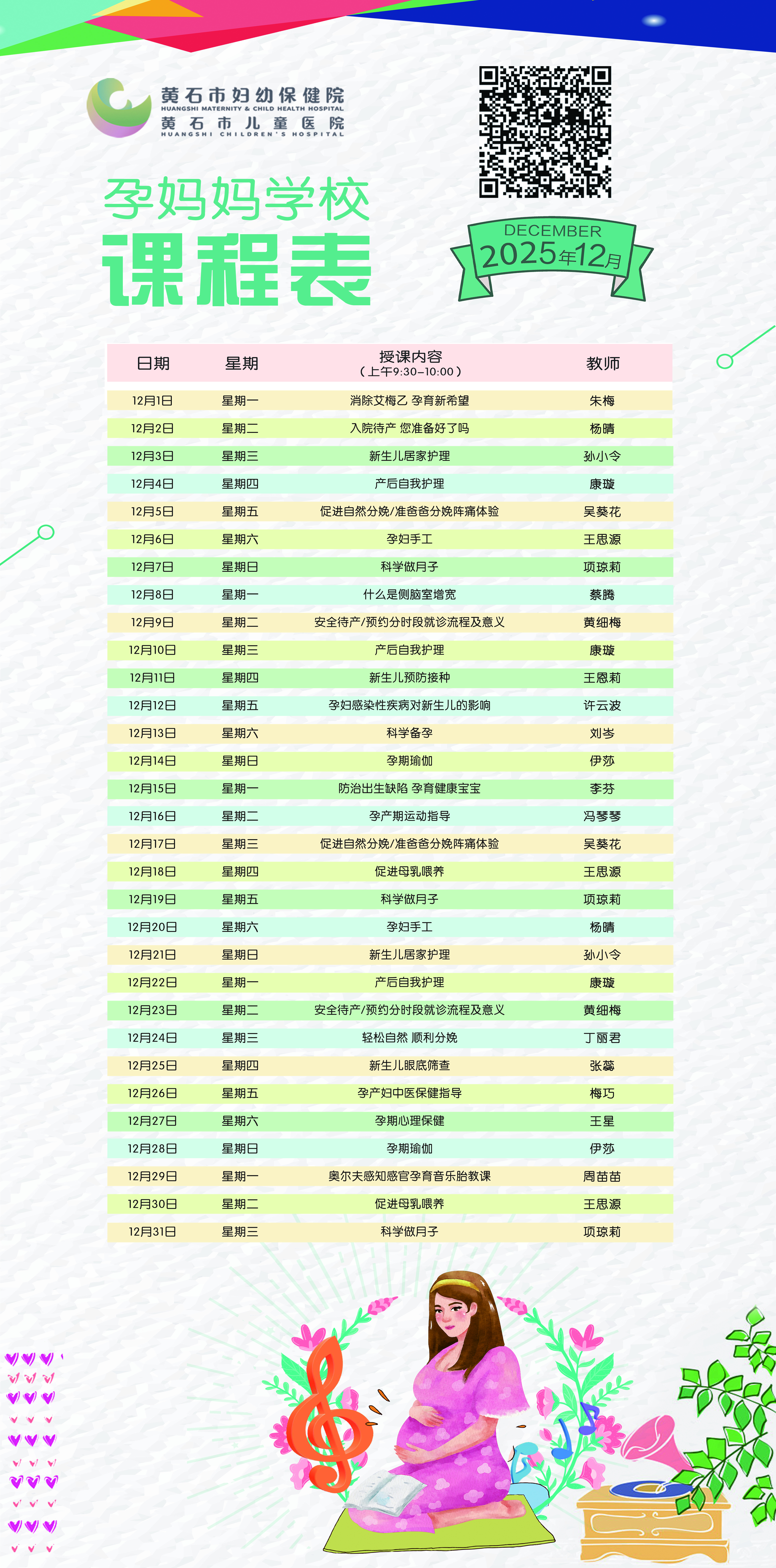 2025年黄石市妇幼保健院12月份孕妇学校课表